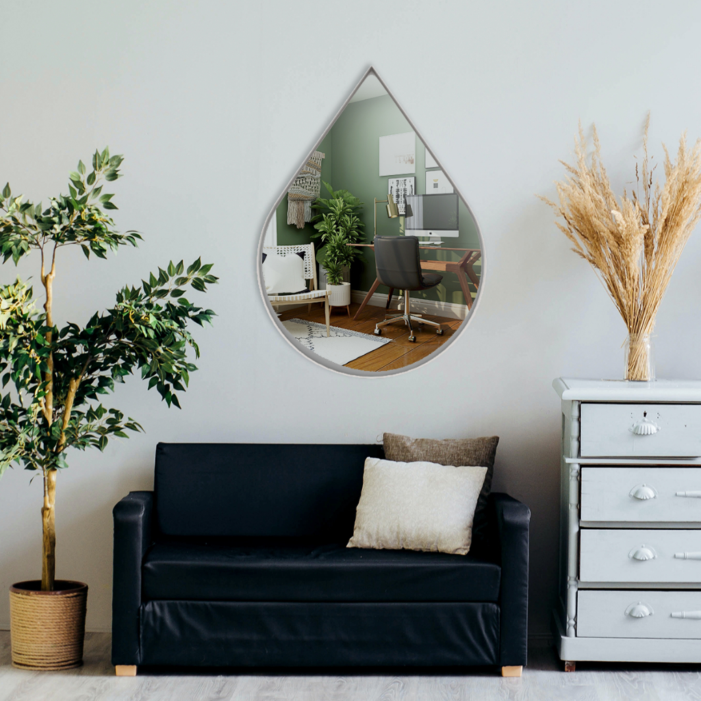 Espelho Retrô Pinterest Orgânico Decorativo Grande 64x44cm Borda em Couro 3cm – Mod. Gota